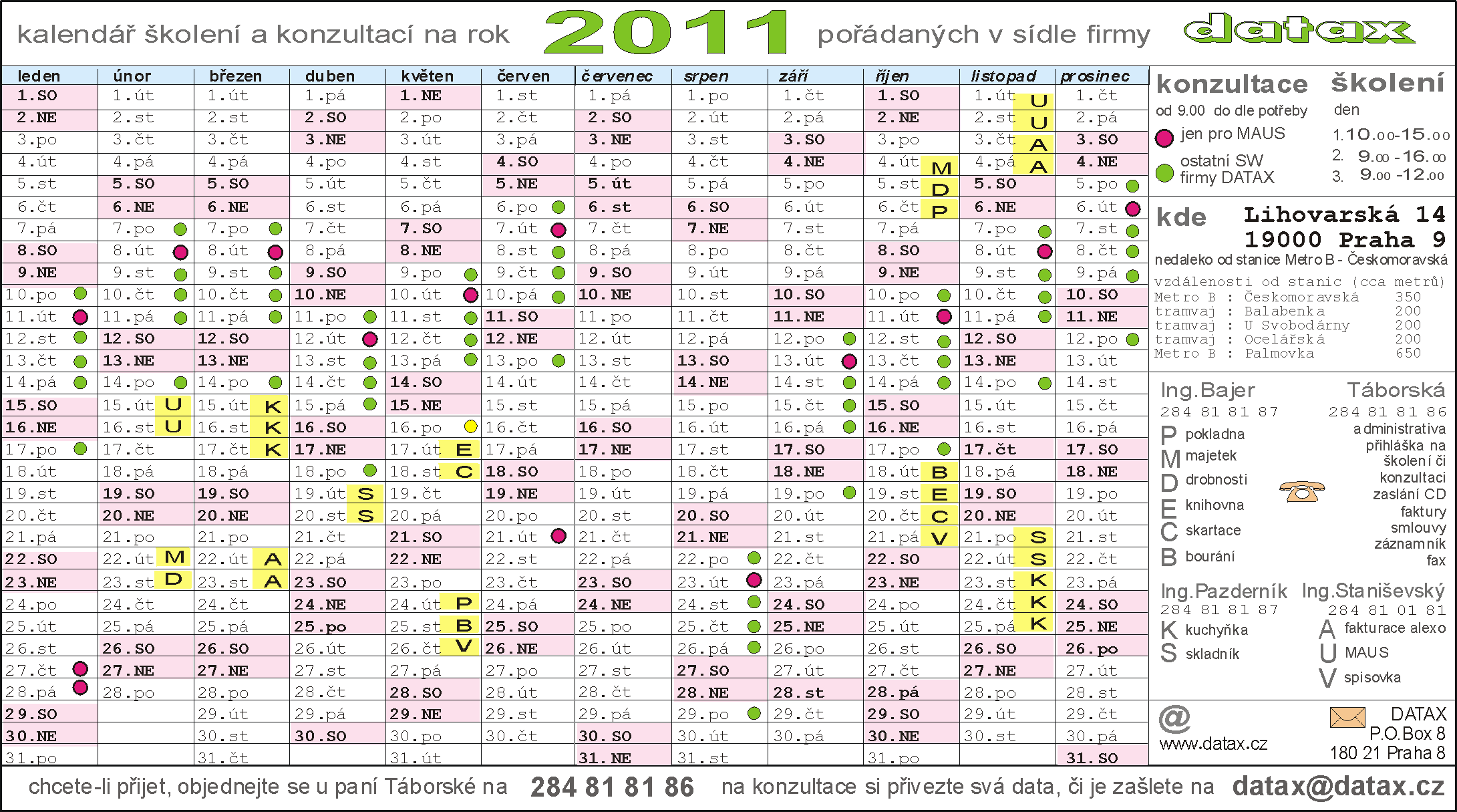 - číslo na záznamník a fax, telefonní čísla a e-mail adresy na zodpovědné pracovníky